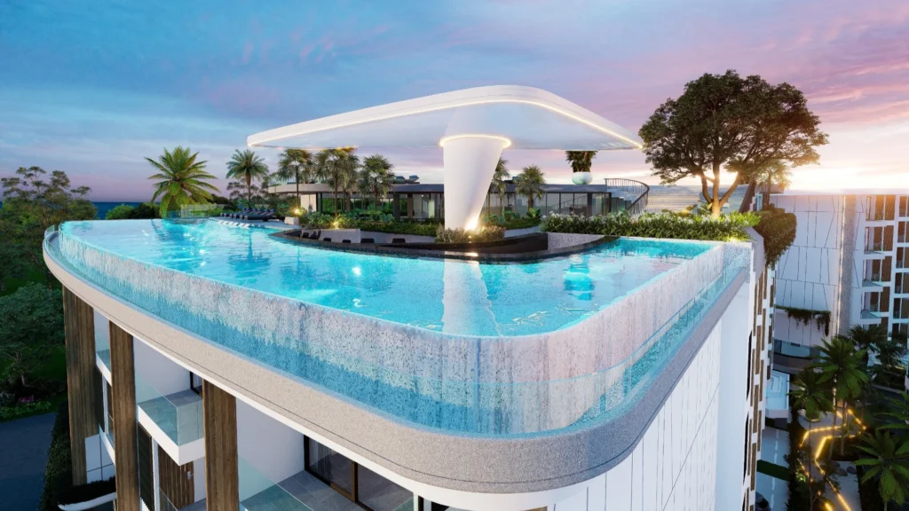 Projekt został zaprojektowany jako zamknięte środowisko mieszkalne w stylu kurortowym, z naciskiem na komfort, prywatność i funkcjonalność. Kompleks składa się z kilku budynków mieszkalnych, oddzielonych zielonymi dziedzińcami i przestrzeniami publicznymi, tworząc spokojną atmosferę do życia i relaksu. Rozwiązania architektoniczne mają na celu wygodną nawigację w kompleksie oraz wyraźne rozdzielenie przestrzeni prywatnych i publicznych.